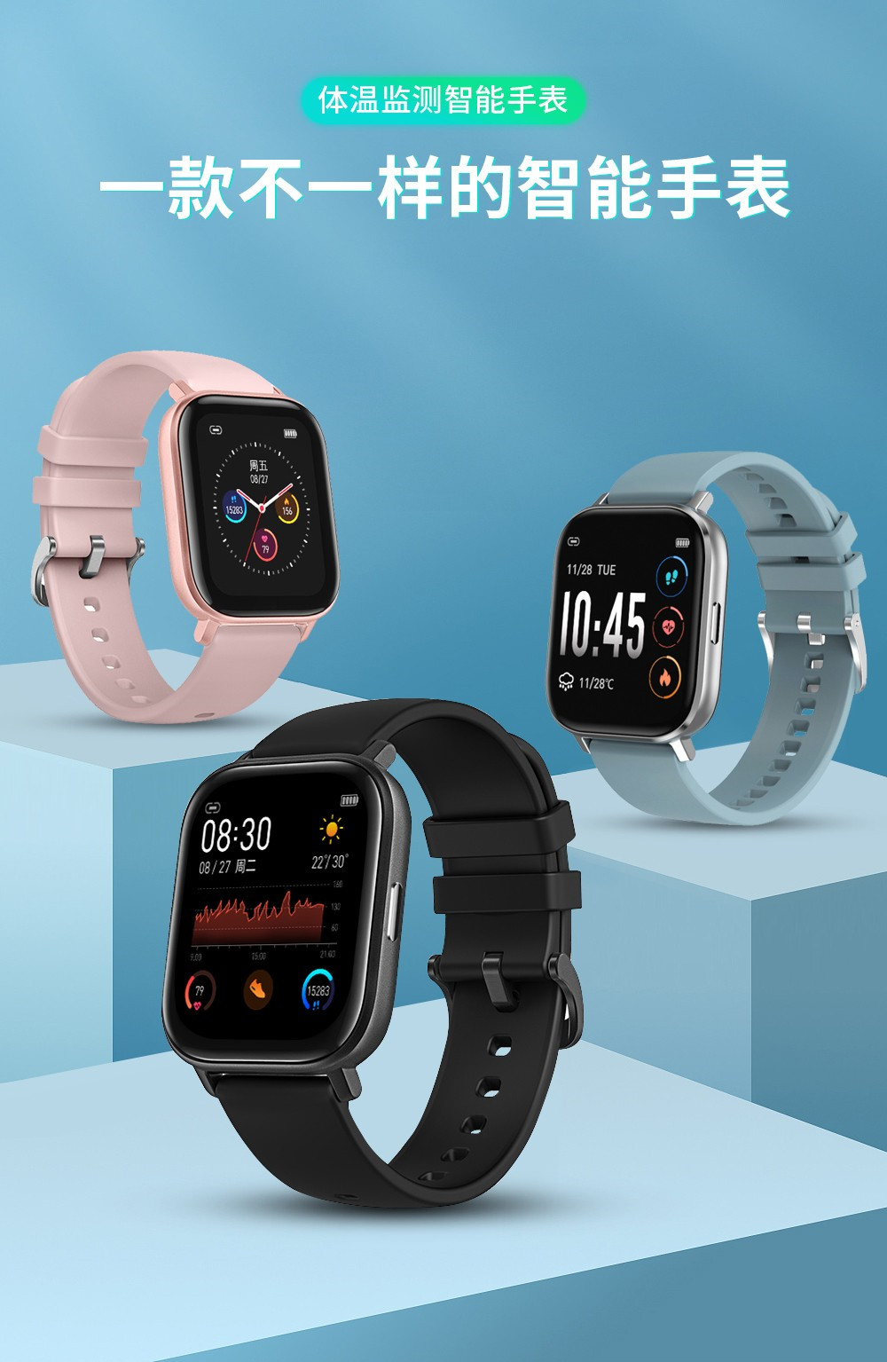 銳賽智能手表 RS-9112,通過(guò)高精熱導(dǎo)溫度傳感器以人工智能,大數(shù)據(jù)精密算法,60秒精準(zhǔn)全天候測(cè)量用戶體溫,可同步APP數(shù)據(jù)。通過(guò)PPG光電可晝夜不休檢測(cè)你的心率,快速清楚的反應(yīng)你運(yùn)動(dòng)時(shí)的身體狀態(tài)。